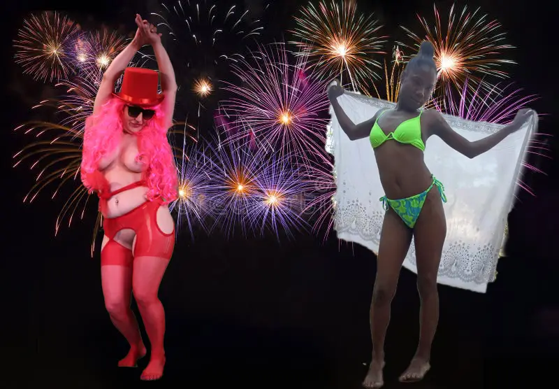Je cherche une ou plusieurs femmes pour poser en tenues sexy plus ou moins dévoilées avec en arrière plan un feu d’artifice.